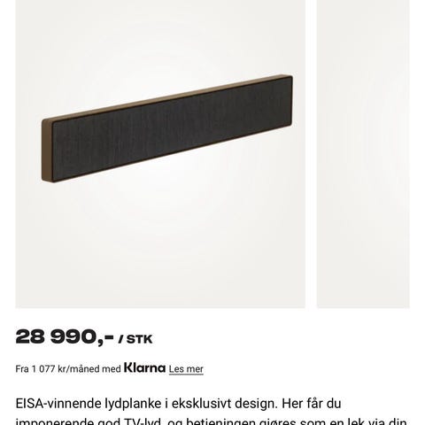 Beste lyden vi noen gang har hatt glede av i hjemmet. Perfekt under TV i stue eller hjemmekino. Nå har vi flyttet og skal oppgradere til større anlegg, derfor selges planken.
