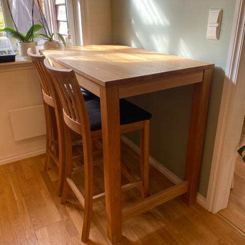 Bardisk med 4 barstoler, massiv eik.