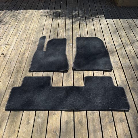 Selger et sett med WeatherTech gummimatter til Tesla Model 3 (foran).
