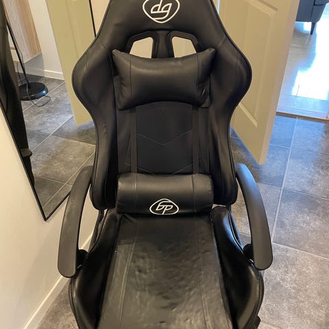 Gis bort, ene armlenet er plukket delvis i stykker. Ene fot er litt skjev så vipper litt