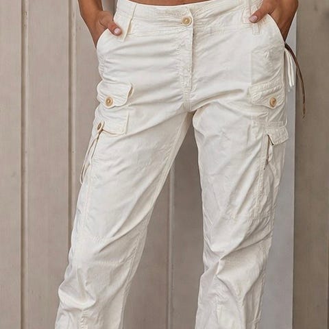 cargo, utility, hvit, lys, sommer, vår, bukser, snøring, lommer, tøff stil, streetwear.