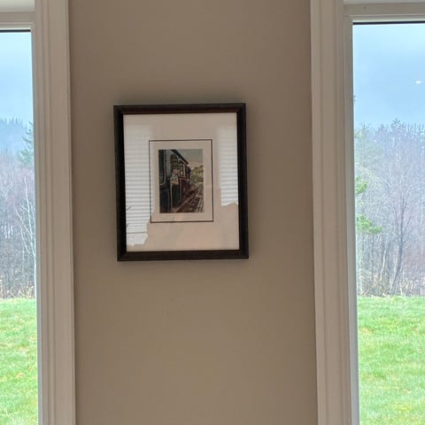 Ola Une Ferstad Liland oljemaleri . Bildet er signert og datert 1997 nede i høyre hjørne. Maleriet har sterke, kontrastfylte farger med gule, blå, røde og rosa toner. Det er innrammet i en mørk treramme med metallbeslag i hjørnene. Passer som veggkunst i stue, spisestue eller andre oppholdsrom. Bildet er 55 x 45 cm. Lerrete er litt løst, bør strammes opp.