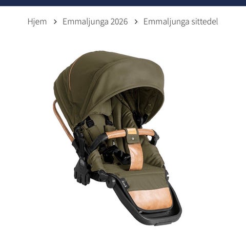 Helt ny/ubrukt ergonomisk sittedel til Emmaljunga NTX90 Ergo Outdoor 2022 modell i fargen Olive med stilige skinndetaljer. Nytt fottrekk i matchende farge følger med.