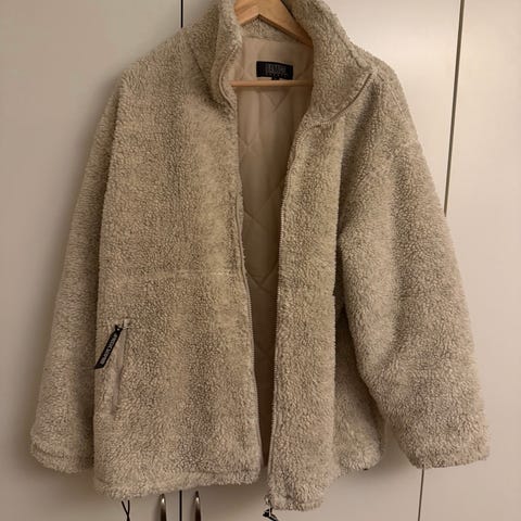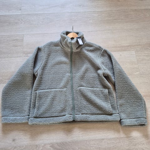 Cubus teddy /fleecejakke for dame i størrelse L. Den har høy krage og hel glidelås i front. På brystet er det en påsydd lomme med glidelås. Passer til hverdagsbruk både ute og inne, og som et ekstra lag på kjølige dager.