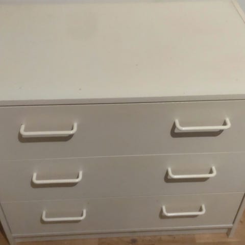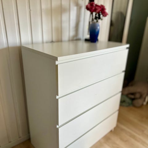 Det er en skade på toppen av kommoden. Se bilde i annonsen.