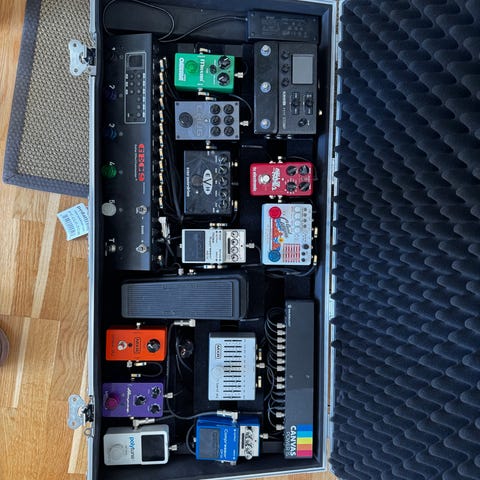 Pedalbrettet er operativt med alt av strømforsyning og pedal kabler inkludert.