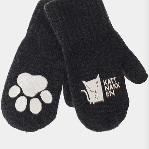 Kattnakken lue for barn i størrelse 104. Unisex-modell i svart merinoull. Luen har ribbestrikket utside og mykt, fôret innside og vindstopper for ørene.