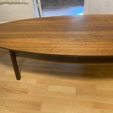 Neglisjert eikebord med flekker og liten sprekk, treng litt kjærleik.