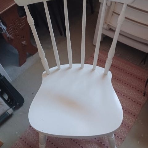 4 stk hvite stoler gis bort. Sittehøyde 45 cm. Må hentes