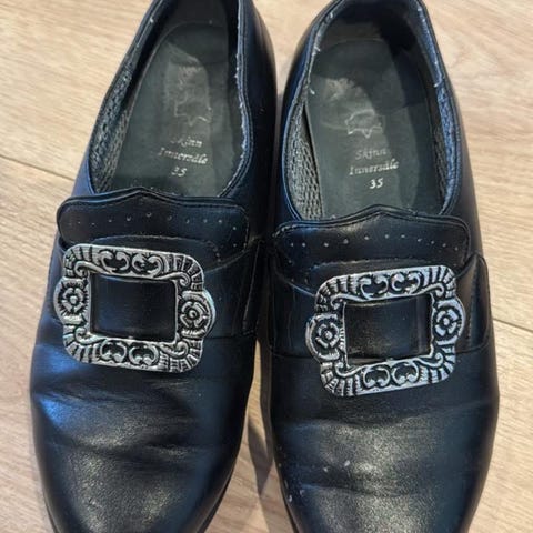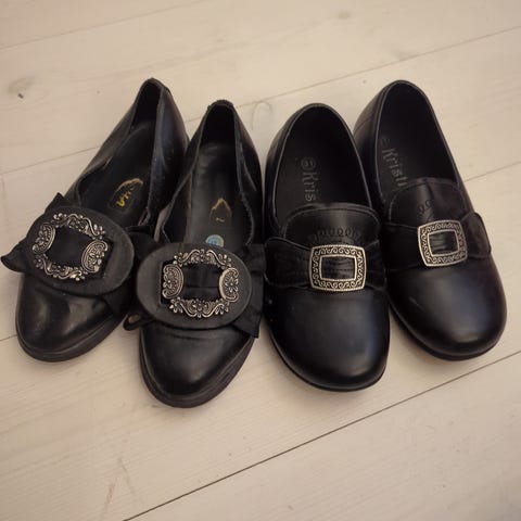 Oent brukte bunadssko med liten hæl.