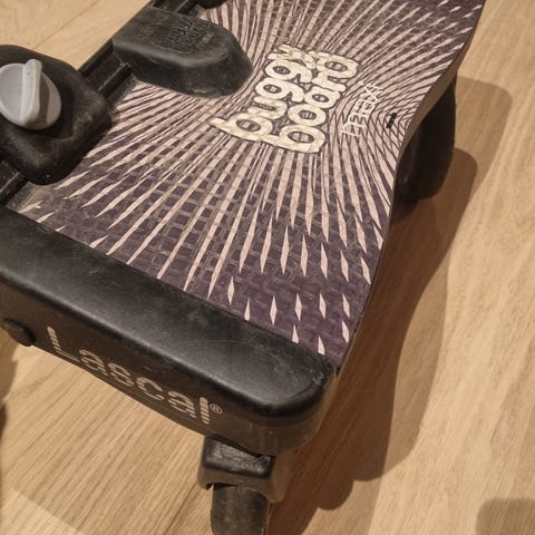 Wheelblades ski til barnevogn i svart plast. Skien monteres foran på hjulet for å gi bedre framkommelighet på snø og is. Justerbar festeanordning som passer til ulike hjulbredder. Undersiden har spor for økt stabilitet på underlaget. Kun brukt en sesong.