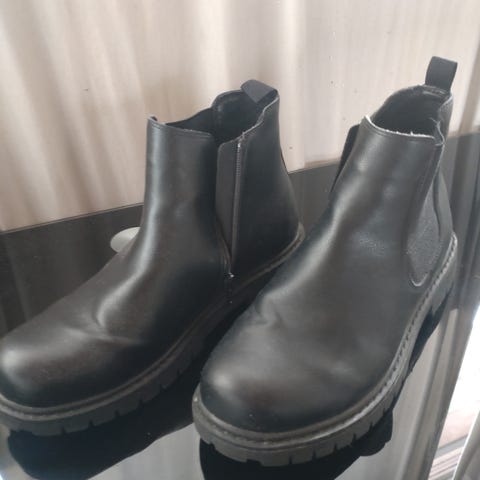De er prøvd ute to korte gåturer men passet ikke min fot, prøvd å legge inn ekstra beskyttelse på hælen men hjalp ikke for meg. De er derfor i veldig god stand og ikke "gått inn", er noen merker foran på skoen etter bremsen på en kranglete barnevogn men blir nok fine igjen med en skopuss.