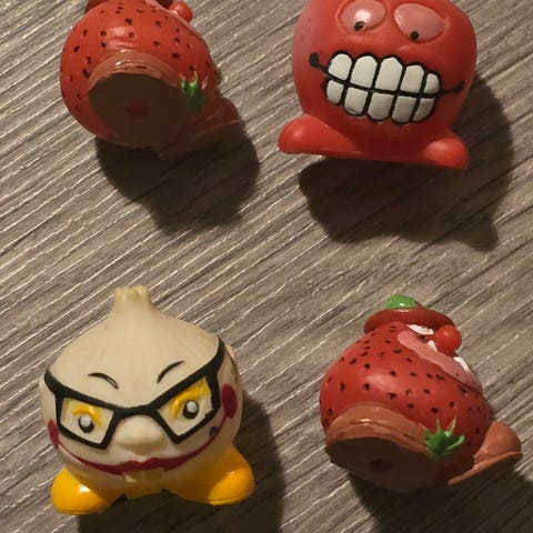 Materiale: Disse figurene produseres ofte i hard plast eller vinyl. Paprika/Chili (den til venstre): Denne figuren er mer uvanlig og følger ofte med i større sett med "grønnsaks-krigere". Verdien ligger på omtrent det samme som Jalapeno, avhengig av etterspørsel.