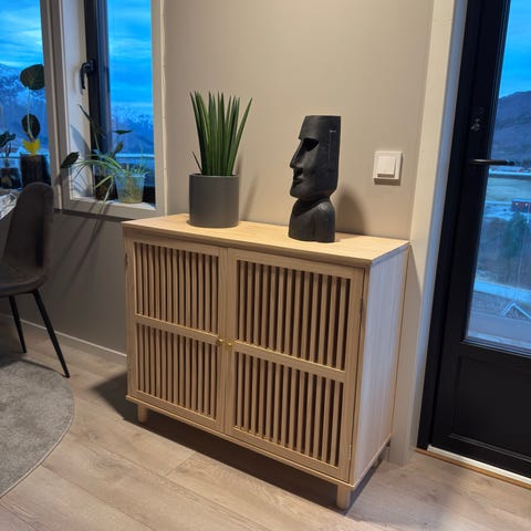 Har limt på trepinner selv, å de to dørene er litt skeivt så må lukke igjen begge skapene samtidlig, men det går ant å juster å stram til regner jeg med.