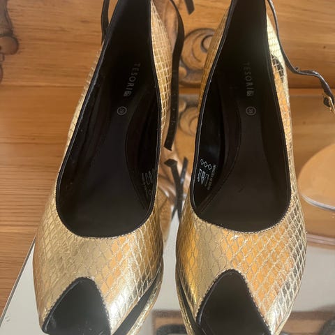 Gull dame pensko, høye heler, TESORI,39