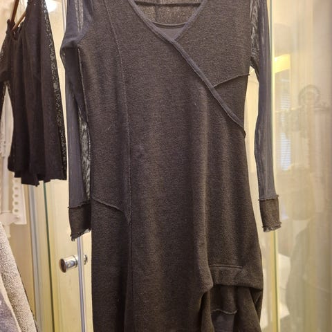 Kan brukes som kjole med og uten tights eller en stor god genser over bukse.