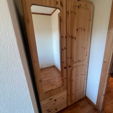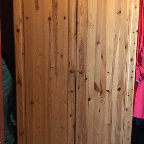 Et godt brukt skap med speil gis bort. Tidligere eier sagde et lite hull på en av sidene på skapet, se bilde. Det er et godt skap til oppbevaring av jakker, hansker, luer osv. Skapet gis bort grunnet plassmangel. Må hentes.