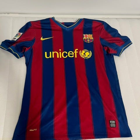FC Barcelona Thierry Henry nr 14 fotballdrakt (2007). Offisiell FCB-merchandise med klubbmerke og UNICEF-logo på brystet, samt Henry og nummer 14 på ryggen. Kortermet trøye med V-hals. Størelse 14 (junior) eller S - 49cm i bryst, 100cm lang