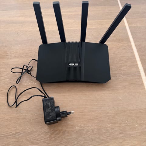 Selger denne kraftige og superstabile trådløse WiFi 6 ruteren fra Asus. Rimelig sikker på at den har alt av funksjonalitet du trenger.