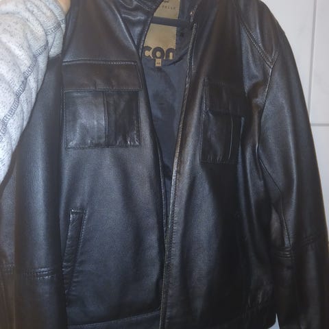 Skinnjakke for herre i brun farge, størrelse M. Jakken er laget i skinn og har glidelåslukking foran. Den har lommer i sidene og detaljer som sømmer og skulderklaffer. Passer som ytterjakke til hverdagsbruk og fritid i overgangssesongene. Kan sendes, kjøper betaler da frakt