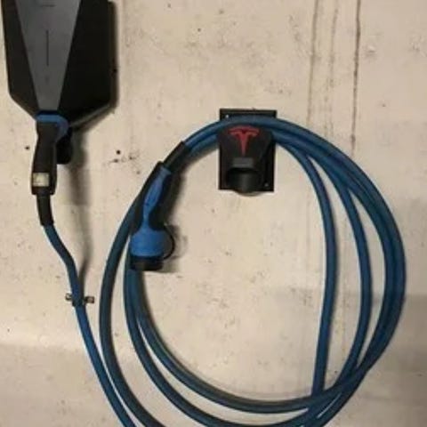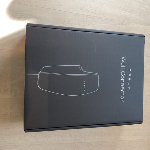 Tesla Wall Connector - generasjon 2. Elbillader med fastmontert kabel 2,7 meter. Beregnet for lading av Tesla og andre kompatible elbiler via riktig tilkobling. På bildene følger det også med tilhørende sikrings- og koblingsutstyr for installasjon. Jordfeilbryter type B og Eaton C32 elementautomat.