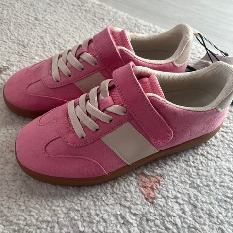 Unified joggesko for jente i størrelse 37. Skoene er rosa med lisser og borrelås foran for enkel tilpasning. Yttersåle i gummi med mønster for grep. Overdel i tekstil og syntetisk materiale. Egnet som hverdagssko og fritidssko.