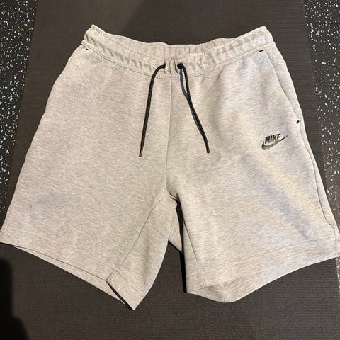 Nike shorts for herre i størrelse M. Shortsen er grå med trykket Nike-logo på siden. Elastisk linning med snøring for justering av passform. To sidelommer. Egnet til hverdagsbruk og ulike typer lett trening eller fritidsaktiviteter.