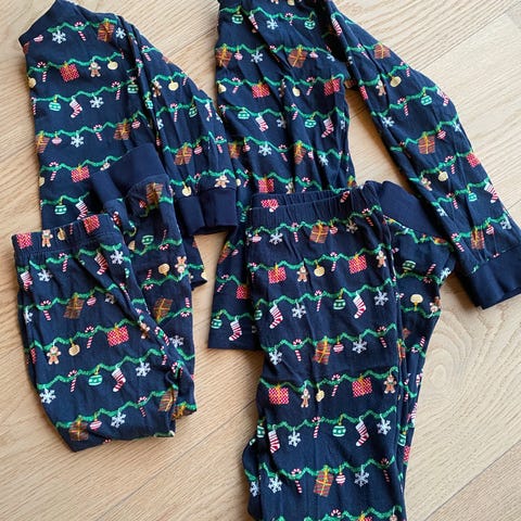 Selger to nydelige pysjer med julemotiver i str. 98/104.