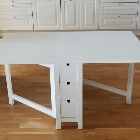Pent brukt kjøkkenbord. Har noen småskader og flekker. Bord, stoler og puter i ett.