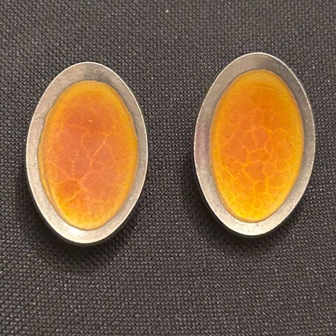 Modahl stemplet ørepynt i forgylt sølv og varmgul emalje.
