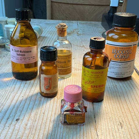 Antikke koboltblå giftflasker selges
