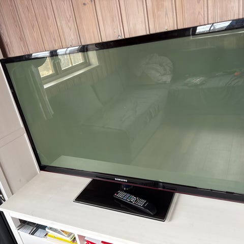 en pent brukt TV med fjernkontroll. Det er ikke en smart-TV, men den kan fint brukes med en Chromecast. Har blitt brukt som soveroms-TV i noen år nå. Veldig god bildekvalitet og bedre farger enn noen av LED-TV-ene på markedet i dag.