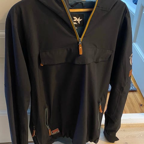 Teknisk 2-lags skalljakke med justerbar hette i vind- og vanntett materiale. Justerbare mansjetter, nedre del av jakken og midjen. Vanntett brystlomme.