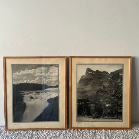 vintage, retro, gamle bilder, naturfoto, landskapsfoto, norsk natur, Gudbrandsdalen, Lillehammer, Otta, innrammet, veggbilde, hytte, hyttepynt, retro interiør, vintage interiør, dekor, svart hvitt foto, fotografi, 1940-tallet, 1950-tallet, veggdekor, kunstfoto, kunst, nostalgi, bilderammer, brune rammer