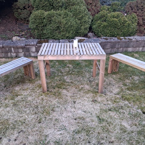 Ukjent merke hagebord og blomsterkasser rotting brun