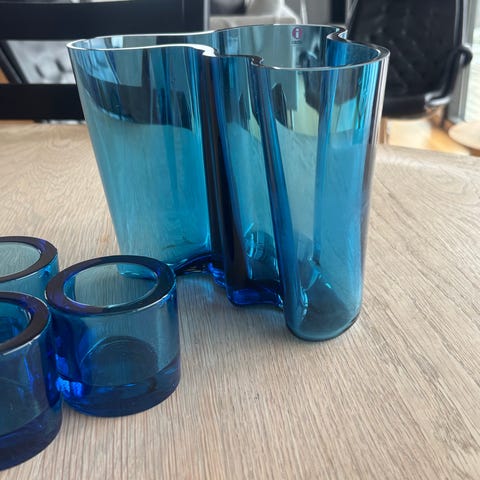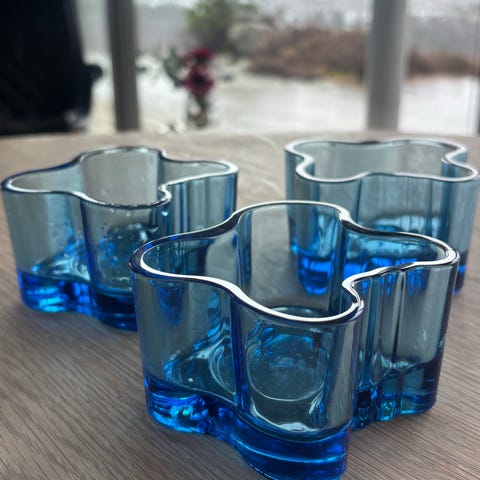Iittala Alvar Aalto lyslykt i glass i turkis farge. Organisk, bølget form typisk for Aalto-serien. Egnet til telys eller små kubbelys. Passer som borddekorasjon eller stemningslys i ulike rom. Selges som avbildet antall lyslykter.