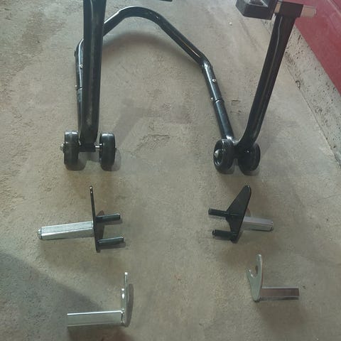 Universell motorsykkelstøtte med hjul metall
