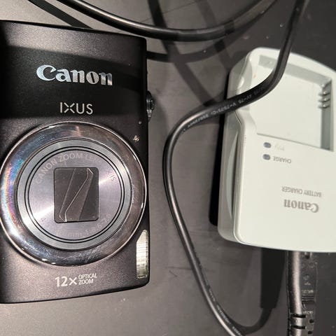 Canon IXUS 170 kompaktkamera med 12x optisk zoom i svart utførelse. Kameraet har innebygd blits, skjerm på baksiden for visning og menyvalg, samt betjeningsknapper for blant annet zoom, av/på og funksjonsinnstillinger. Egnet til hverdagsfotografering, reiser og enkle videoopptak. Batteri- og minnekortluke samt stativfeste er plassert på undersiden av kameraet.