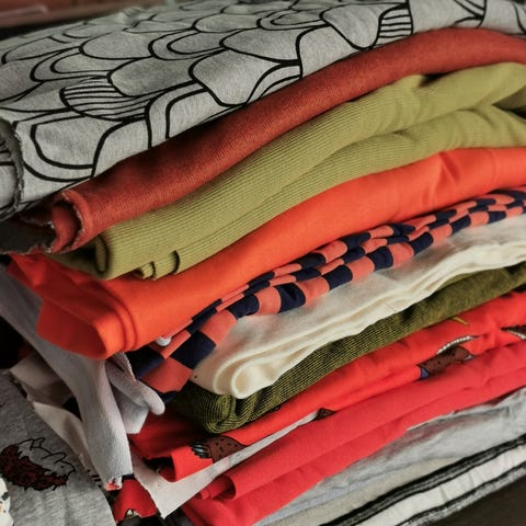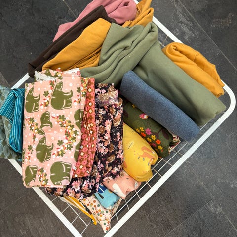 stoffpakke fleece og tekstiler i ulike farger