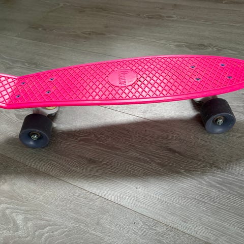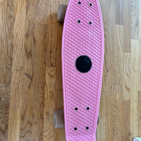 Rosa skateboard. Kjøpt i Barcelona og brukt noen uker i fjor sommer. Gode hjul på, og brettet er ganske stabilt.