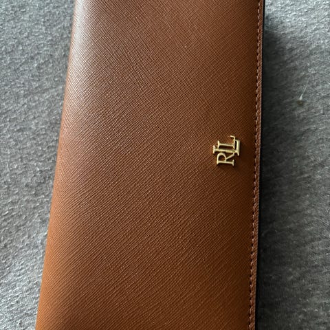 Polo Ralph Lauren lommebok i lær for dame. Lommeboken er i brun farge og har glidelåslukking rundt hele. Innvendig har den flere kortlommer på begge sider, egne rom for sedler og kvitteringer samt et separat myntrom med glidelås. Leveres med original eske som vist på bildene.