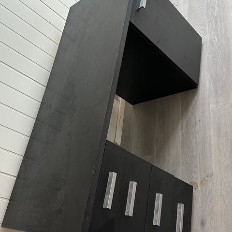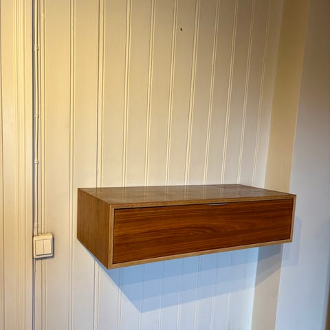 Hjemmelaget pult/bokhylla laget av solid tre gis bort. Denne er laget av forrige huseieren og var montert på veggen. Det passer ikke våre møbler og derfor gir vi det bort ved henting. Dimensjoner: