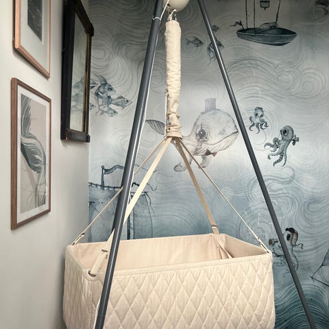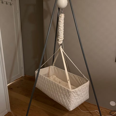 Det er en «classic bundle» med Connect basic motor. Stativet er i fargen «cream white», vuggen i fargen «nature».