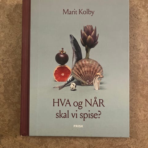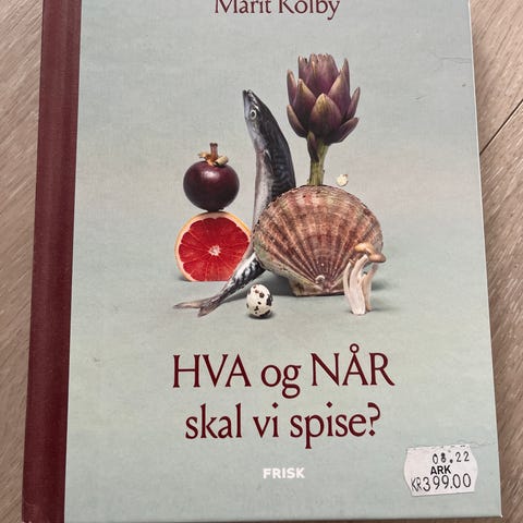 "Hva og når skal vi spise?" kokebok. Boken tar for seg mat og måltider, med fokus på hva vi bør spise og når. Illustrert forside med ulike matvarer. Egner seg som inspirasjon og oppslagsverk for planlegging av måltider og kosthold.