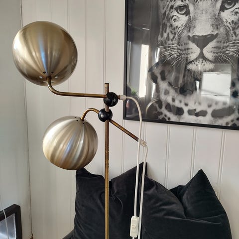 Fin lampe i god stand. Tror den er dask? Liten bulk på den ene kulen
