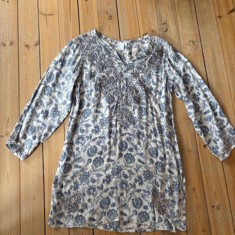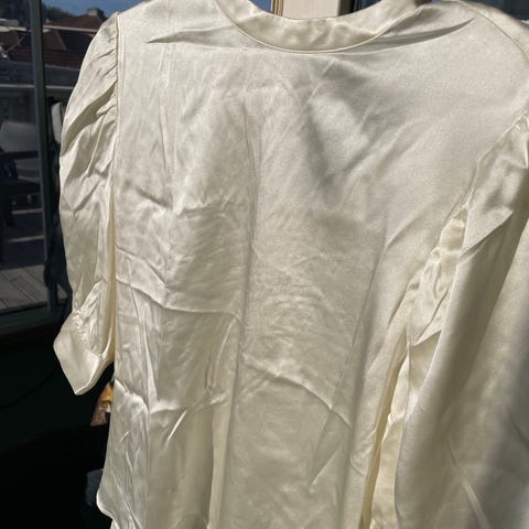 Ane Mone bluse for dame i størrelse 38. Blusen er lilla og laget i et glatt silkestoff med 95 % silke og 5 % elastan. Modellen har korte ermer, knappestolpe foran og lett rynket halskant. Passer til både hverdags- og penere antrekk, og kan kombineres med bukser eller skjørt. Selges kr 400,- pluss evt frakt.
