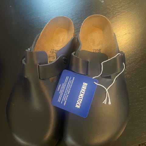 Selger et par pent brukt Birkenstock Boston tresko. Kun brukt et par ganger til og fra postkassa. Dessverre akkurat litt for store for meg.