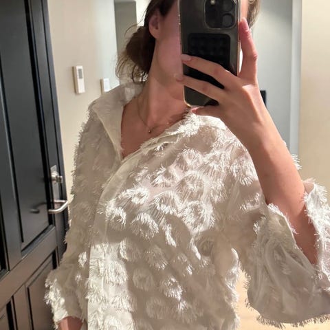 Donna skjorte for dame i størrelse S. Denne er oversized så det passer en M også. Skjorten er hvit og laget av 100 % bomull. Klassisk modell med krage, lange ermer og mansjetter. Knappelukking i front. Egnet til både hverdag og mer formelle anledninger.