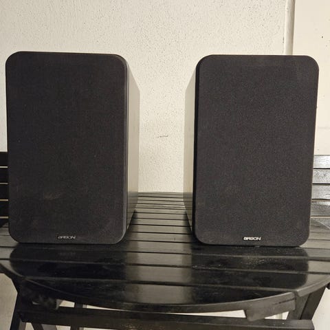 Sonos One trådløse høyttalere i svart. Kompakte multiromshøyttalere med innebygget støtte for strømmetjenester via Sonos-appen. Har berøringsknapper på toppen for avspilling, pause og volumkontroll. Kan brukes enkeltvis eller pares som stereosett, og kan også inngå i et større Sonos-system for lyd i flere rom. Tilkobling skjer via Wi‑Fi og strøm med vanlig strømkabel. Egner seg for bruk i stue, kjøkken, soverom eller hjemmekontor.