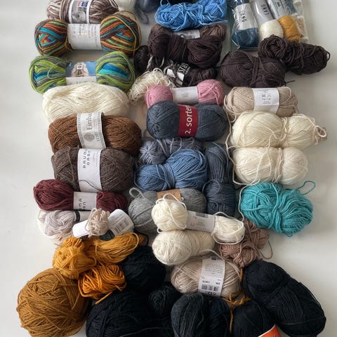 500 gram Tynn merinoull kjøpt på fabrikkutsalget til Sandnes garn. Samme farge har samme innfarging. Røyk og dyrefritt hjem. Selges kun samlet.